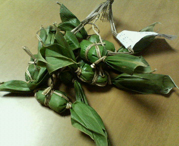 笹ッぱに包んだよもぎだんご(中身はつぶあん)で、笹の香りのよい安上がりなおみやげなのですが、おいしい!非常においしい!わらで丁寧に包んであります。