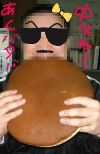 さて、話が変わりまして、先日日記でも触れました巨根、巨大どら焼き、早速UP!